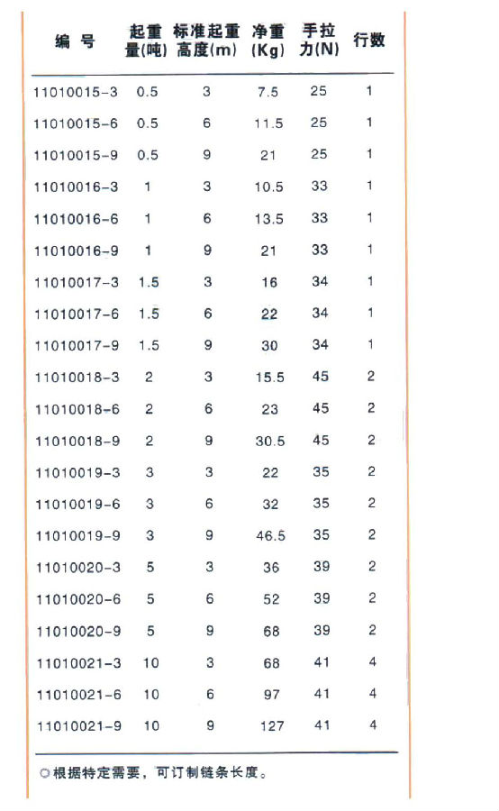 手拉葫蘆參數(shù):