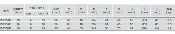 液壓擴張器參數(shù):