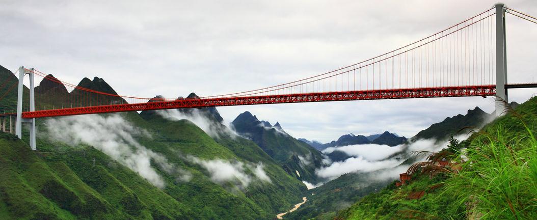 壩凌河大橋是國內(nèi)最長的大橋,同時在世界上是排名第六的大橋,橋體全長2257米,是最大跨徑桁梁懸索橋。